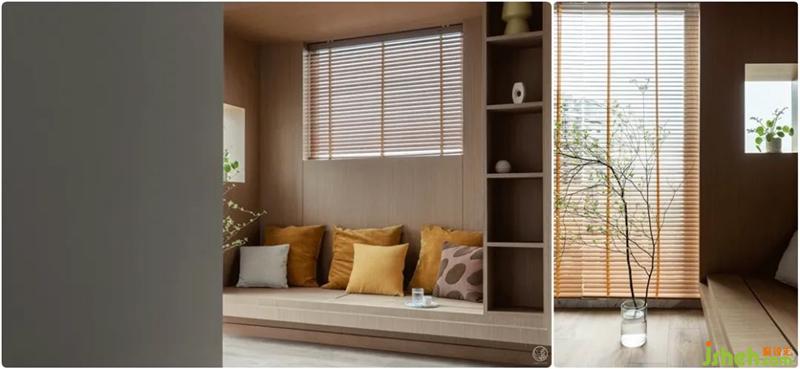 休閑廳的臥榻主體是集收納、休閑、采光于一身的木作,完全為這四口之家量身定制,秋色、黃櫨、棕黃的抱枕融合在一大片的原木色調(diào)之中,靜靜地,懶懶地,緩緩地,只為留住那最好的時光。
