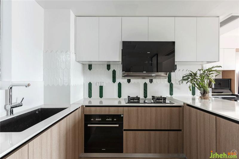 茶白做底色,自然木質(zhì)的地板、窗簾、定制收納柜,勾勒出起伏而負有節(jié)奏的空間線條,墨綠色沙發(fā)來自ZAOZUO 的T系列,雕塑感十足,搭配抽象音符的黑白抱枕,無限延伸空間韻律。裝修設(shè)計