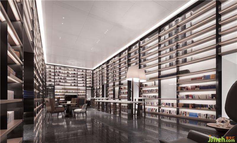 書(shū)吧及咖啡吧作為室內(nèi)場(chǎng)所的最終空間,四周兩層高的書(shū)架作為空間主體帶來(lái)強(qiáng)烈的視覺(jué)感,看似自由的家具擺放形式自然組成不同的交流氛圍,為整個(gè)室內(nèi)畫(huà)上完美句號(hào),心境也隨之而升華。室內(nèi)設(shè)計(jì)師
