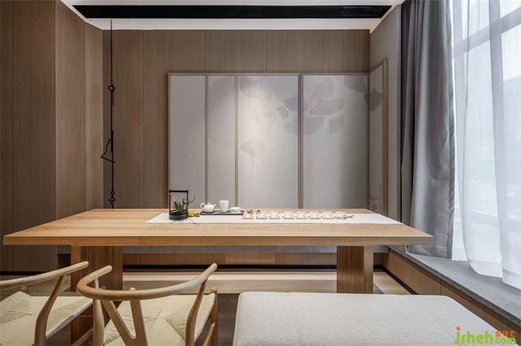 室內(nèi)色調(diào)柔和,酒店設(shè)計(jì)以自然的材質(zhì)進(jìn)行自由組合,原木家具和裝飾結(jié)合溫暖的燈光設(shè)計(jì),水墨藝術(shù)佐情,將吊爐、木桌椅、屏風(fēng)等元素一并邀入空間,嵌入古意,給空間平添幾分禪意與通透,覓一份超脫都市的性情。