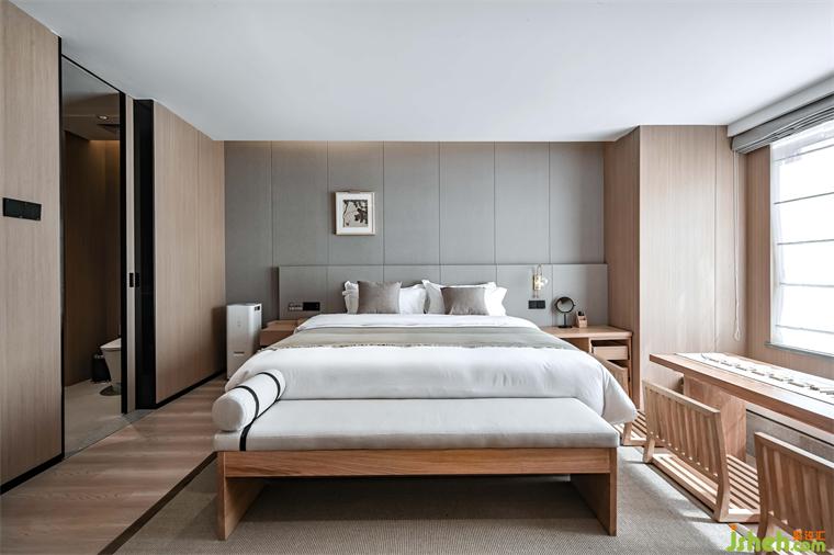 臥室一旁設(shè)置休閑區(qū),空間之間相互關(guān)聯(lián),在此可品茶、話家常,漸生出審美上的飽滿與精神上的隱奢,酒店設(shè)計(jì)如同身處寧靜中感受城市的韻律和脈動(dòng),又好似在繁忙都市中嘗試避世和歸隱,回歸真實(shí),自在游走其間。