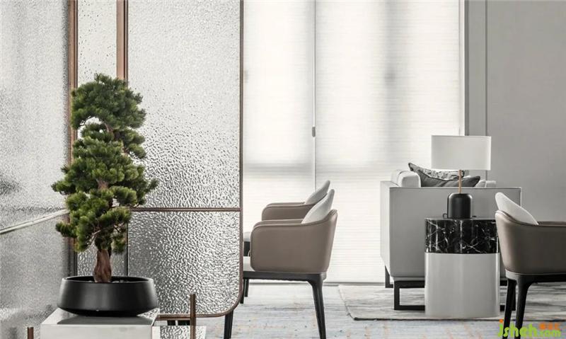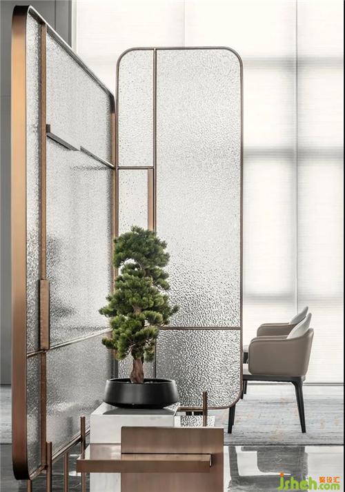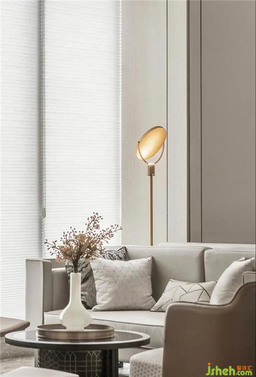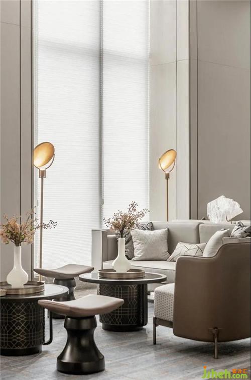 硬裝材質(zhì)的豐富與室內(nèi)軟裝搭配相得益彰,售樓處設(shè)計(jì)豐富且具有觀賞性,窗簾采用看似簡(jiǎn)潔的蜂巢簾進(jìn)行減法搭配。