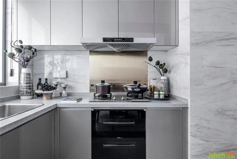 進入廚房就可以感受到鋪面而來家的味道,樣板房設(shè)計炊具的煙火氣巧妙的融合在樸素的淺色系塊面的空間裏,幹凈又溫暖。此時,萬物靜待最熟悉不過家的味道新鮮出鍋。