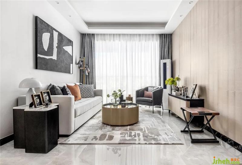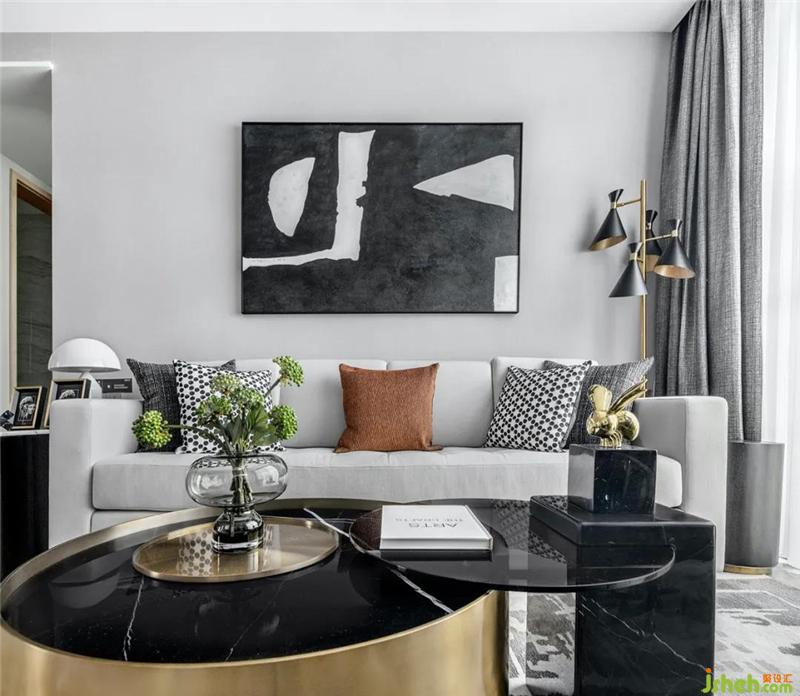 客廳空間簡約大氣,地面的線條勾勒,幹凈利落的家具,精致的軟飾,錯落有致,精致和諧,配以色調(diào)與紋理表現(xiàn)力極強的地毯,局部搭配石材的家私飾品,細節(jié)處不時運用金屬線條鑲嵌等些許元素提升意境,使生活多了壹份品味和關懷,營造壹個蘊含現(xiàn)代輕奢的品質(zhì)空間。