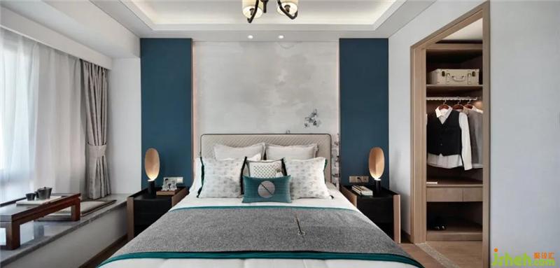 長輩房的沉穩(wěn)與大氣自成一體,空間用色張弛有度,加入現(xiàn)代中式元素的融合,藝術(shù)掛畫點綴在空間中,營造一種靜謐的感覺,獨具藝術(shù)張力。