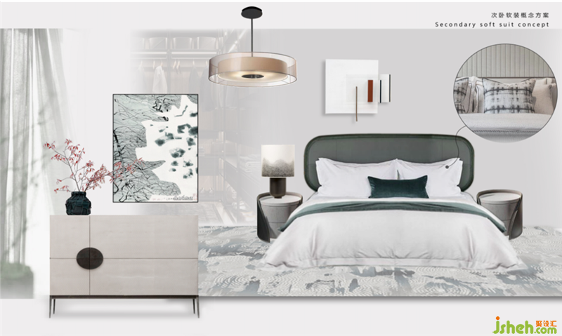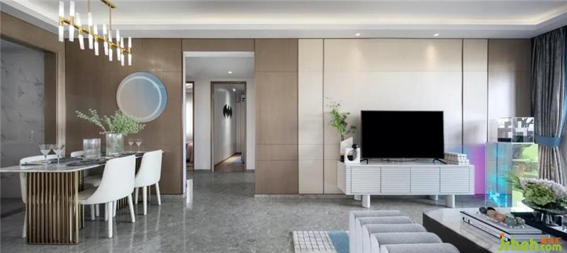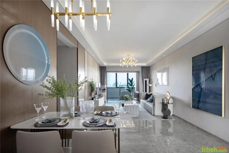莫蘭迪色系的高級(jí)灰色調(diào)彰顯沉靜的格調(diào),為空間陳設(shè)調(diào)和出足夠氛圍,獨(dú)具藝術(shù)氣息的大型落地裝飾鏡,營(yíng)造造型,材質(zhì),光線的互動(dòng),提升空間的視覺感與品質(zhì)感。