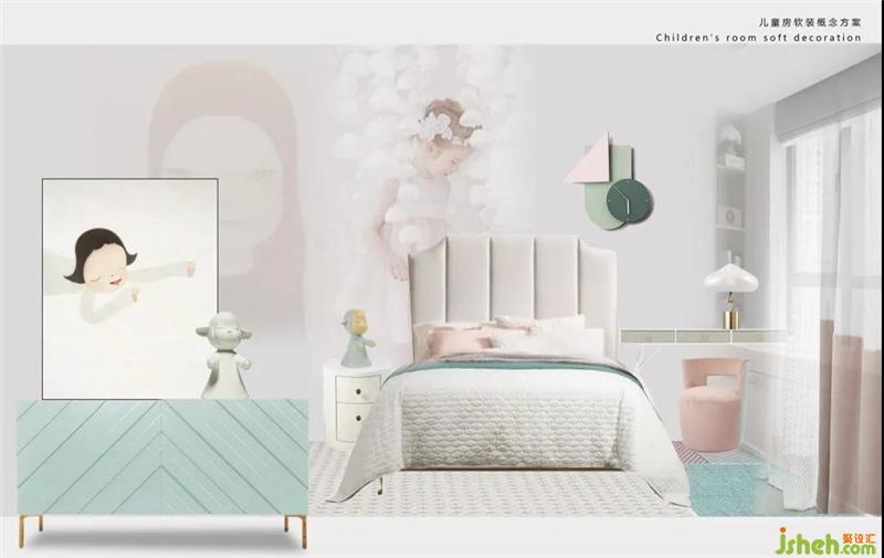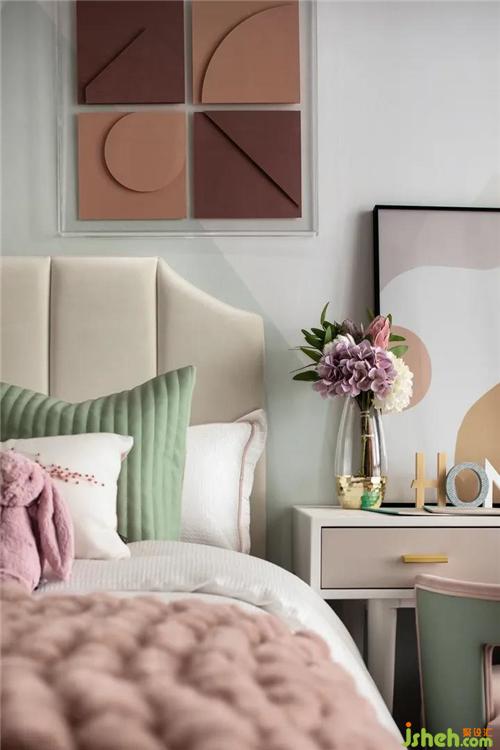 兒童房意在打造女孩子的粉色王國(guó),用水綠色點(diǎn)亮空間體現(xiàn)了孩童活潑個(gè)性的特質(zhì),選用藝術(shù)家奈良美智的作品為空間增添十足玩味,在設(shè)計(jì)上實(shí)現(xiàn)空間體驗(yàn)最大化,營(yíng)造出輕松愉悅的氛圍。利用飄窗位置延伸書桌功能,增加空間的實(shí)用性。