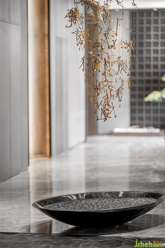 過(guò)道的設(shè)計(jì)借鑒宋詞與文字元素的重組,廊道、理水、植樹(shù),引景入室,銷售中心設(shè)計(jì)營(yíng)造自然山水與人文的自由意趣,人與環(huán)境的和諧共處、相得益彰。