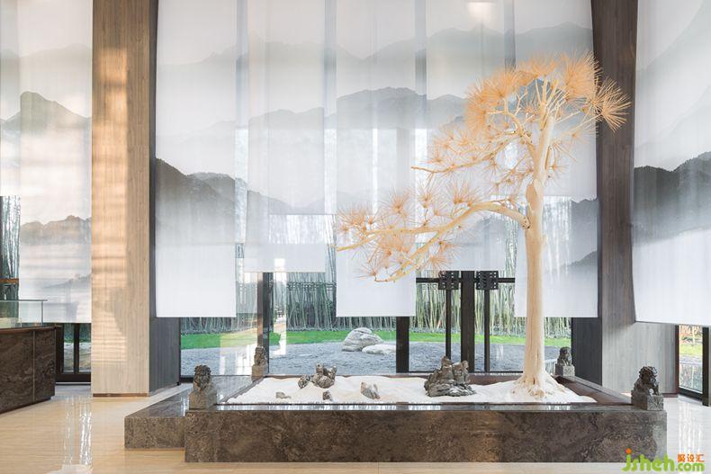 進(jìn)入銷售區(qū)首先映入眼簾的是迎客松造景,設(shè)計(jì)公司融入安徽標(biāo)志性景觀迎客松,以此表達(dá)熱情歡迎五湖四海的賓客來到悅山府。