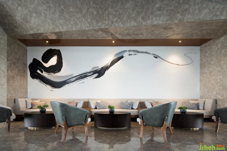 設(shè)計師始終堅持“室內(nèi)設(shè)計是建筑設(shè)計的延伸”,摒棄過多的裝飾陳設(shè),結(jié)合建筑的整體環(huán)境,融入本土在地文化才能形成設(shè)計的差異化,設(shè)計師以川籍藝術(shù)家張大千潑墨云山的畫作《蜀山行旅圖》作為概念發(fā)想,提取畫作中云、山、水、石元素于室內(nèi),用浪漫主義的表現(xiàn)手法,將行云流水層疊之勢抽象提煉后,再以具象手法藝術(shù)地置于室內(nèi)空間中。
