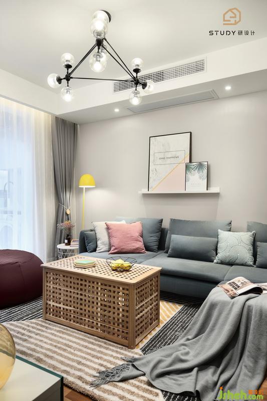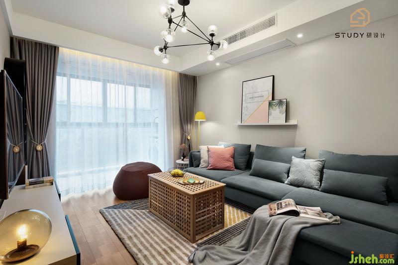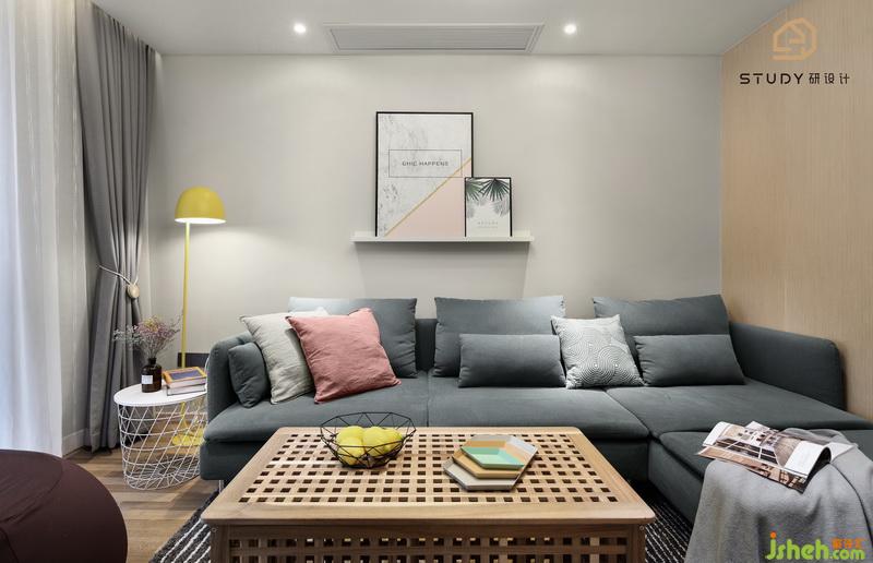 客廳作為待客區(qū)域,室內(nèi)設(shè)計師設(shè)計的背景以淺色為主??蛷d中間寬大的主沙發(fā)厚重、舒適,墨灰色作為主沙發(fā)色,也成為整個客廳的點(diǎn)睛色,雅得明朗。