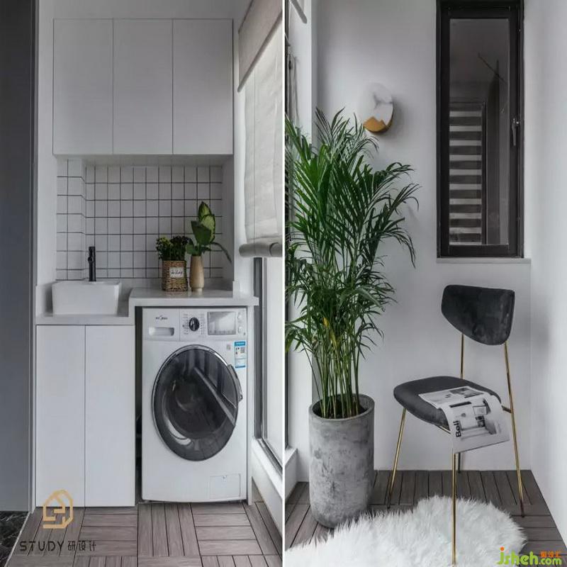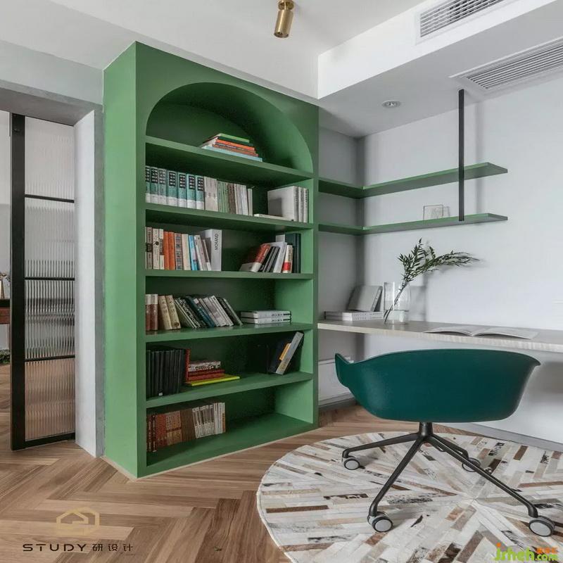 拉上朦朧紗簾,閉上勞累的眼睛,主臥書桌旁的綠色植物,室內(nèi)設(shè)計師搭配上藍色的床單和藍色的靠椅枕,給人舒適以及熟睡的感覺。