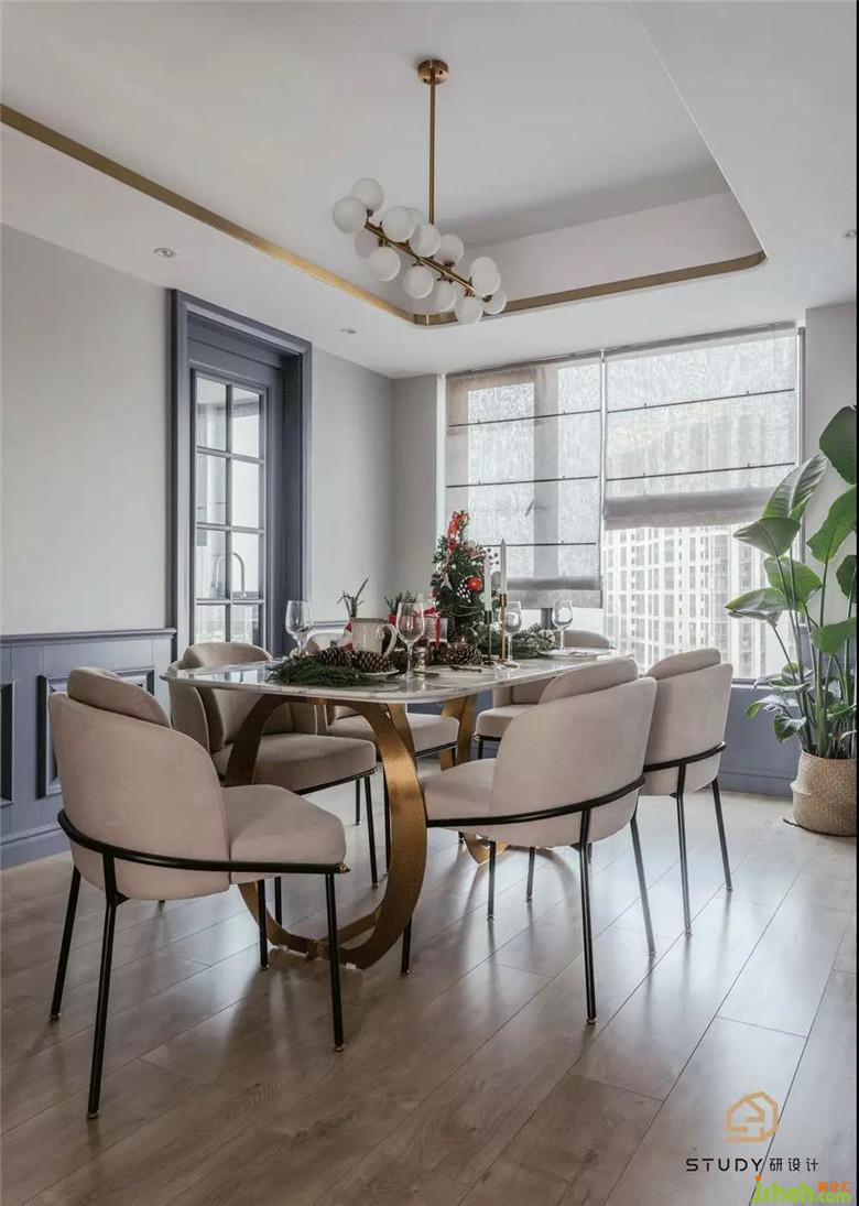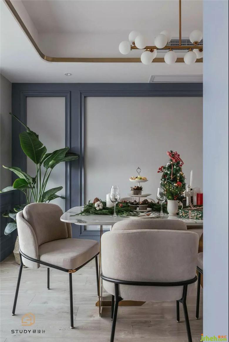 餐廳背景墻室內(nèi)設(shè)計(jì)師選用了的簡(jiǎn)潔元素,在灰棕色椅子的映襯下,讓這片區(qū)域顯得更加明亮,帶給視覺(jué)極大地舒緩。