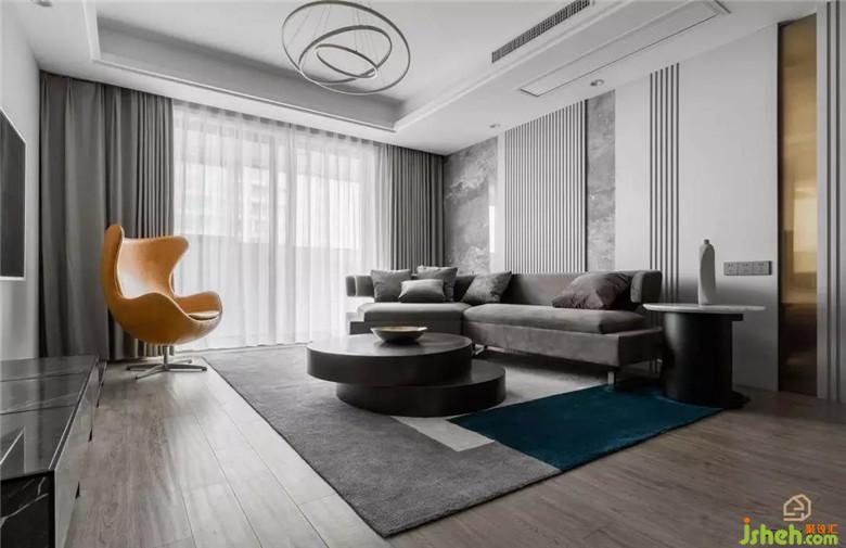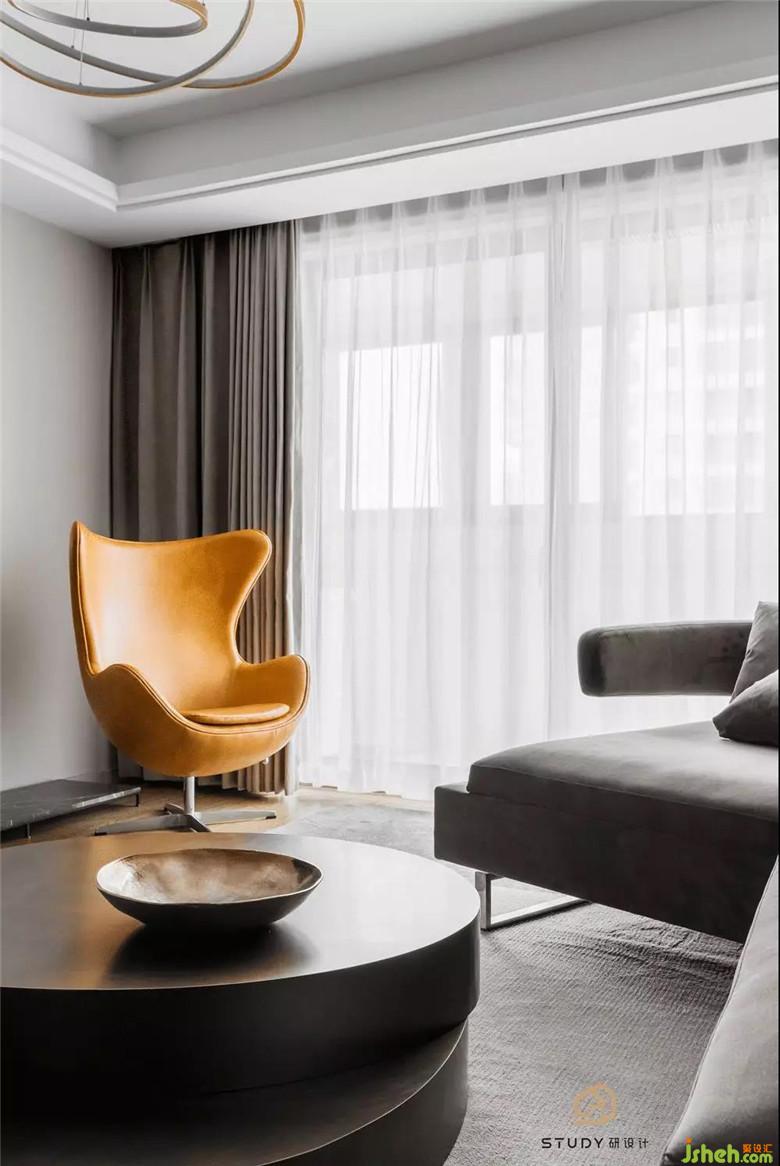 在不變動(dòng)格局的前提下,通過改變原硬裝飾面的色彩與材質(zhì),豐富空間情感,去除頂面繁瑣的線條,讓整個(gè)空間干凈利索,使得原本平淡的空間充滿質(zhì)感。硬裝與軟裝完美融合,夢幻灰大理石、灰色烤漆墻板、絨面沙發(fā)、金屬茶幾、黃色蛋殼椅,不同材質(zhì)、飽和度的灰與一抹亮色交替演奏一場層次豐富的交響樂。作品內(nèi)的家具都是由室內(nèi)設(shè)計(jì)師設(shè)計(jì)定制的,款式可選性更多,自由更改配色及面料,讓整體更加協(xié)調(diào)呼應(yīng)。定制的異形微轉(zhuǎn)角沙發(fā),可以滿足不同坐姿需求,家庭聚會聊天,也可以慵懶的享受屬于自己的愜意與美好。
