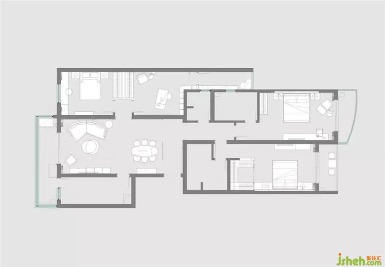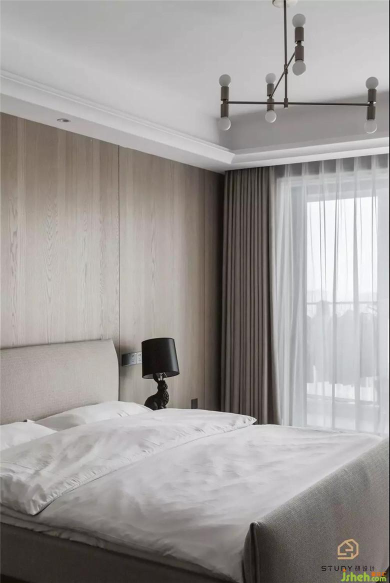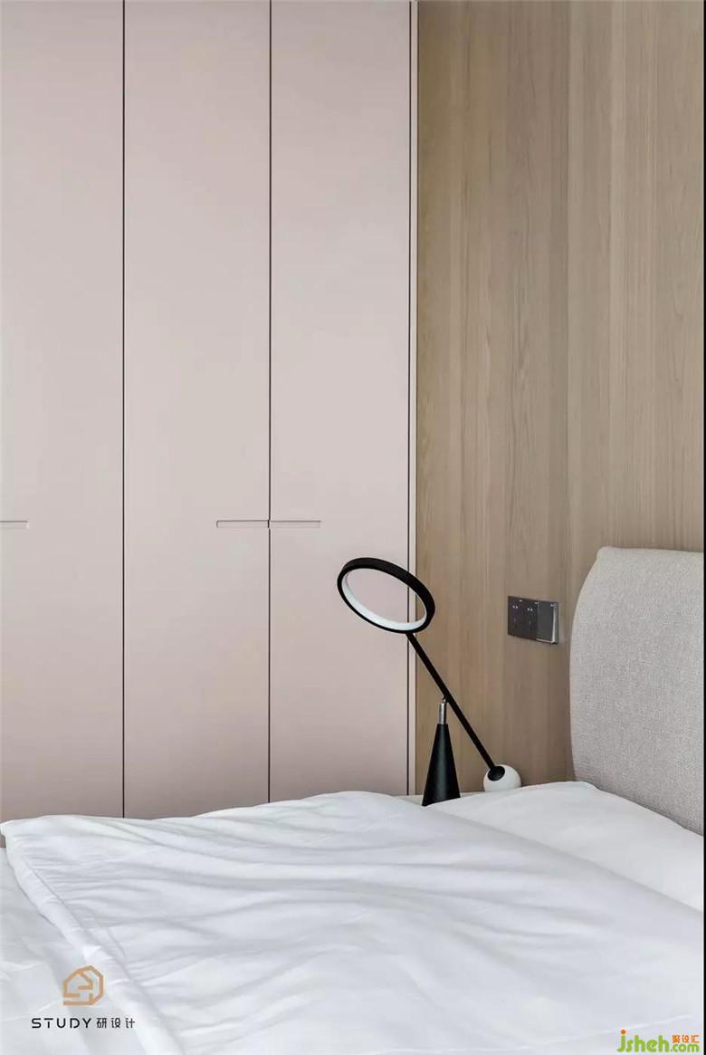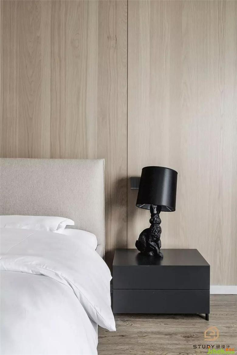 次臥室改變了原先呆板對(duì)稱的床頭造型,取而代之的是自帶溫柔屬性的天然木飾面,次臥室為父母居住,硬裝與軟裝家具使用的都是較為素雅的色彩與材質(zhì),室內(nèi)設(shè)計(jì)師使整個(gè)空間更具浪漫舒適的溫情。