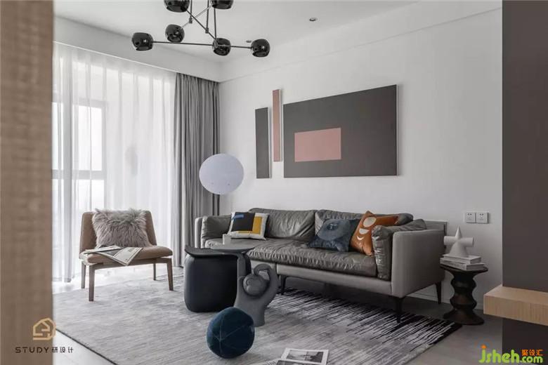 客廳空間室內(nèi)設(shè)計師以清爽?凈的?為主基調(diào),溫潤的??點綴其間,肌理柔和,仿佛把窗外的?然?機引?室內(nèi),灰?的?藝沙發(fā)為整個空間營造著簡約的現(xiàn)代感。?猴?造型的舉盤,趣味新穎,是客廳部分的幽默擔當。