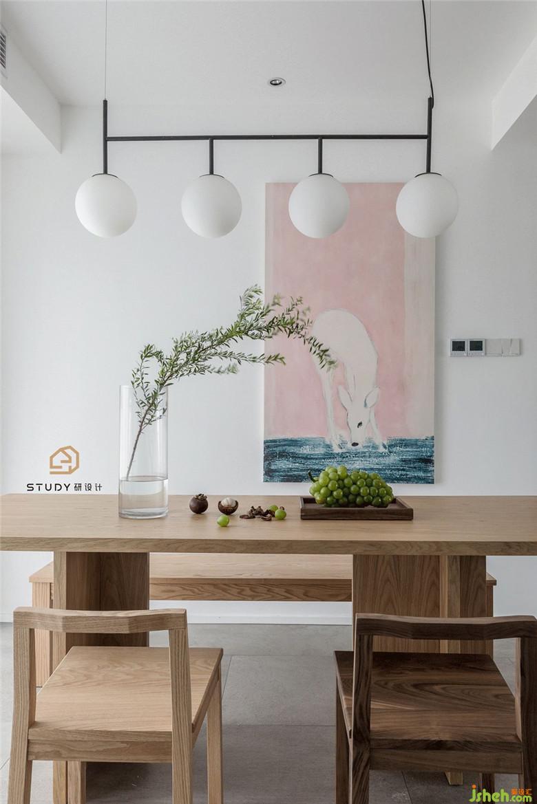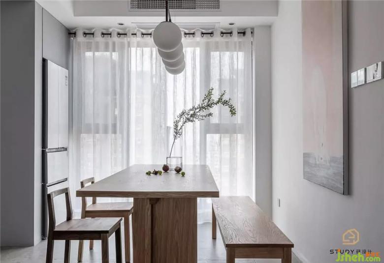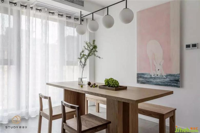 ??餐桌餐椅與客廳相呼應(yīng),溫潤的??在整個空間蔓延。