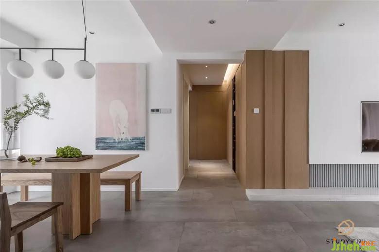 不同木色的碰撞,營造出樸實豐富的溫潤空間,此時白色像旁白,襯托著這個空間凸顯獨特非凡的層次感。
