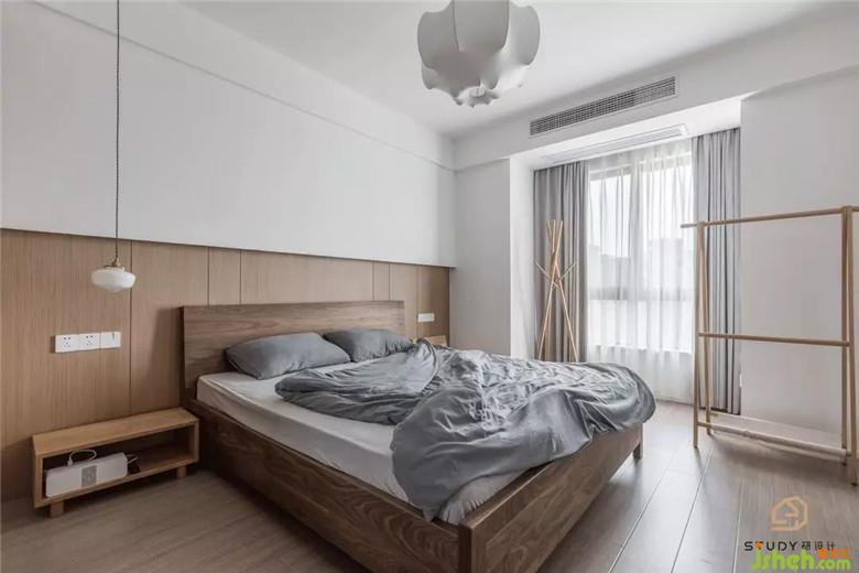 次臥室淺綠色窗簾與綠?掛毯清新?然,襯的整個空間淡妝輕抹,?掃夏?的煩悶,仿佛清涼的微?席卷著好?情撲??來。色彩上采??級且不暗沉的淺灰為底?,搭配暖潤的?質(zhì)床及床頭柜,調(diào)和出舒適宜?的?活?例。