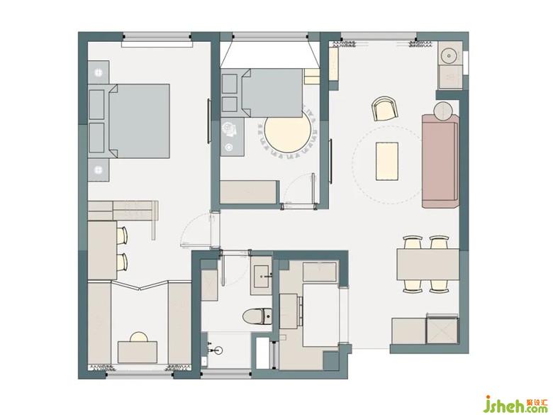 愛美的女主人,衣柜似乎永遠(yuǎn)不夠大。儲(chǔ)物、試衣、化妝、熨燙,戶型改造后擁有了獨(dú)立的步入式衣帽間,輕松get功能上的多元化。