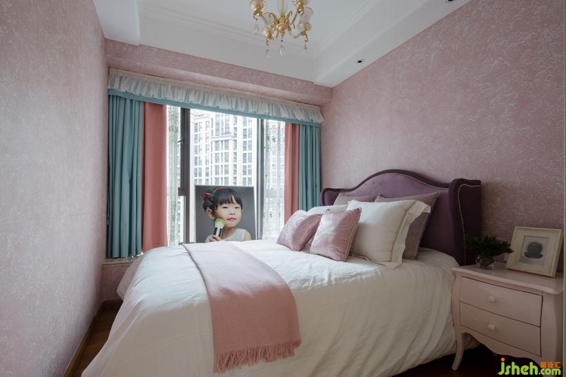 兒童房以粉紫色的主色調(diào),搭配可愛的簾頭和小吊燈,營(yíng)造出童趣氛圍,滿足擁有公主夢(mèng)幻房間的期待。