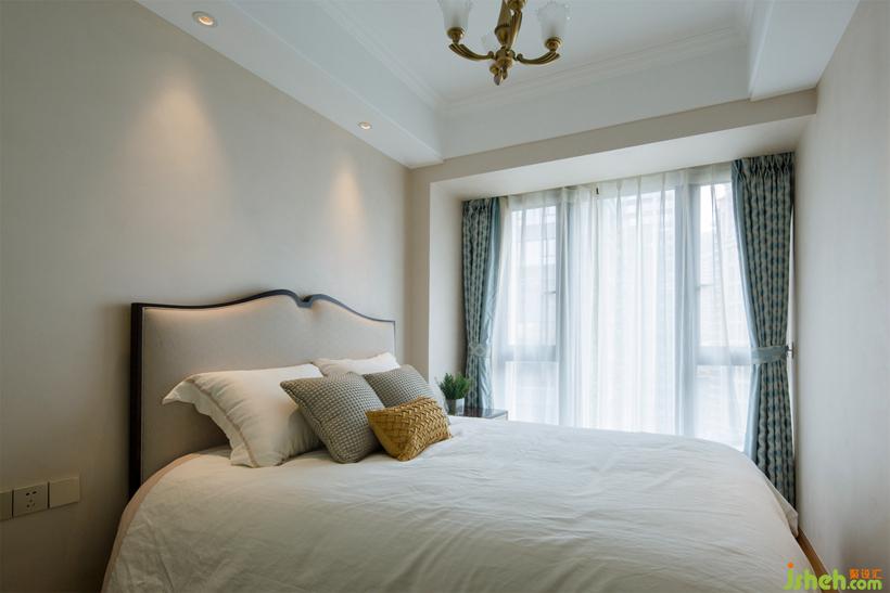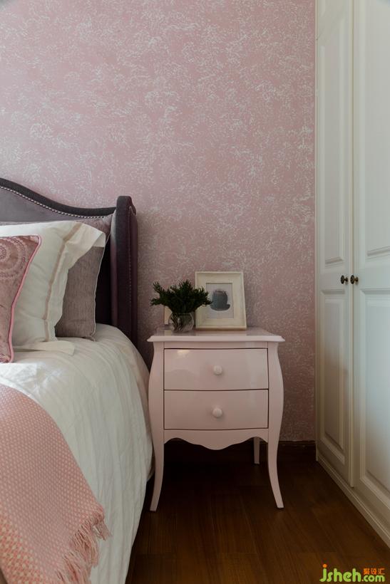 以淡雅色系搭復(fù)古白色床頭柜,營(yíng)造出溫柔且浪漫的舒眠氛圍。