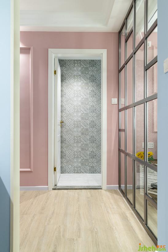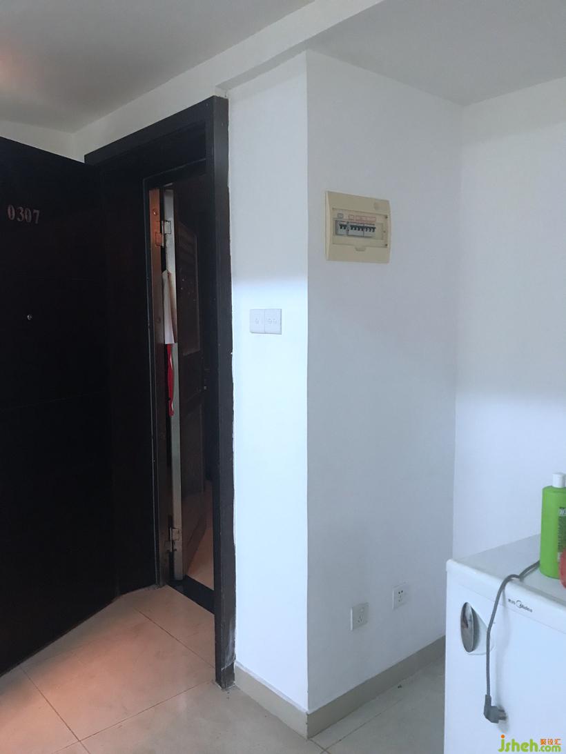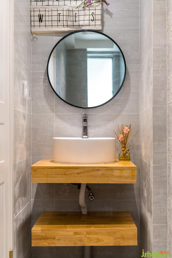 將墻面封平,自然留出下圖洗手臺位置,由于電箱過于靠近鏡子,通過收納袋做遮擋,也能放置小件物品。