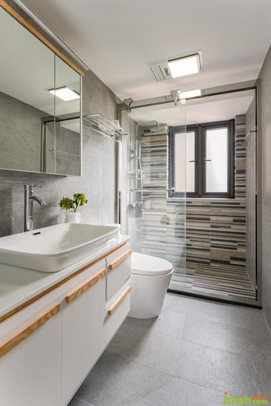 淋浴房選用地毯磚,干區(qū)選用水泥磚。