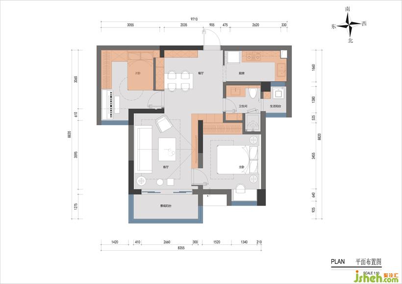 2.生活陽臺改為從衛(wèi)生間入,廚房L形臺面,安排上了。