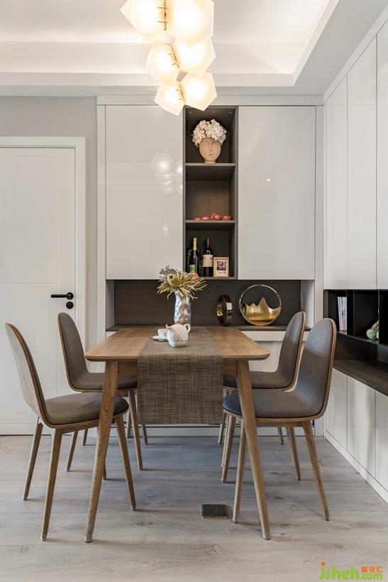 小戶型福星,從次臥空間爭取出餐邊柜,柜體凹洞平齊餐桌,作為餐桌的延伸。桌旗由Sandy日本背回。