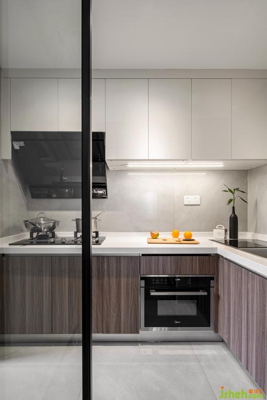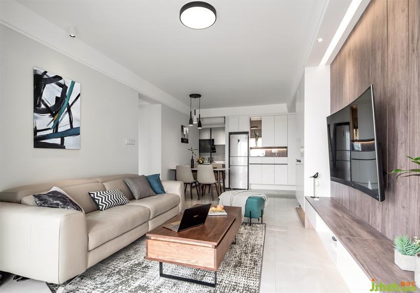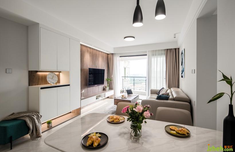 同視角對比---實景圖 全屋柜體定制將材質統(tǒng)一,電視吊柜在安裝前需要做好預埋角鐵的工作。柜體起伏的層次,創(chuàng)造出不拘的形式。