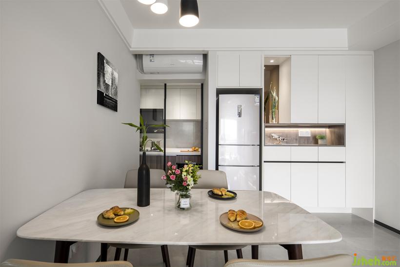 將冰箱外置平齊鞋柜的同時,自然預留出掛機空調的絕佳安置位。