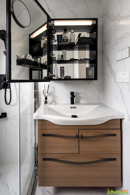 浴室柜多角度鏡面設計,鏡柜內外都有照明,可以環(huán)形檢查自己的儀容。內部配有充電口,充電線不必從柜門夾縫中伸出,吊在半空充電。