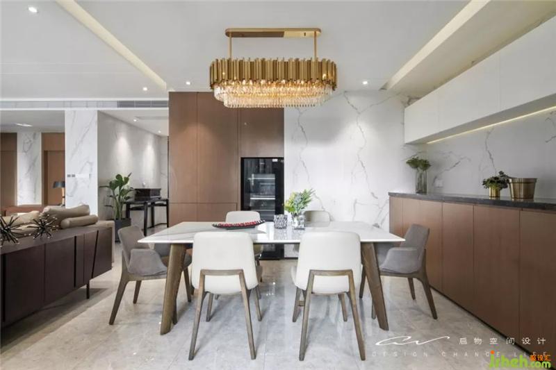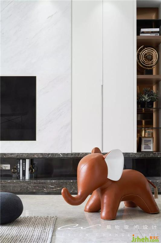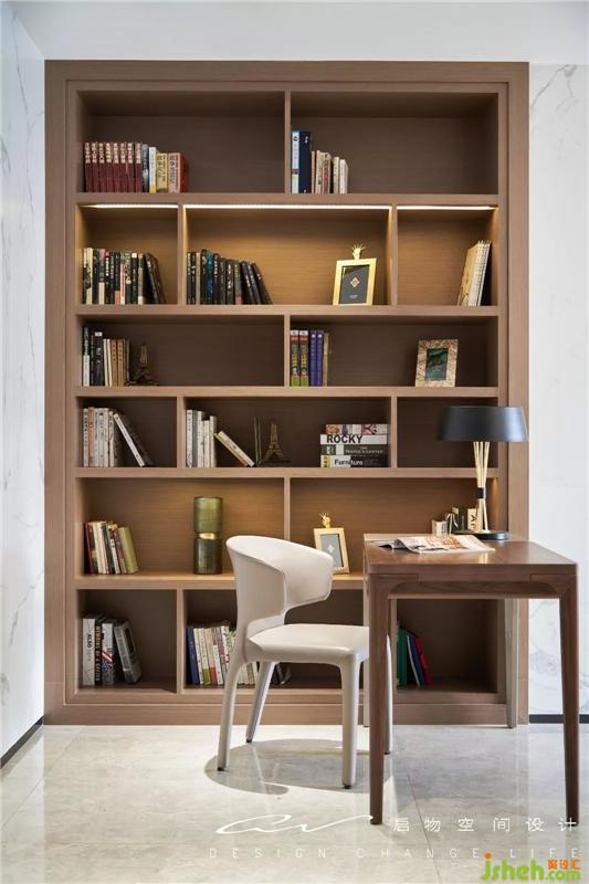 左邊從書房區(qū)走向臥室空間,右邊為玄關(guān)區(qū)。將硬裝的基底做到夠,再用少量的軟裝點(diǎn)綴,無需堆砌就能發(fā)散出大宅的氣魄。裝修設(shè)計(jì)