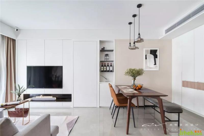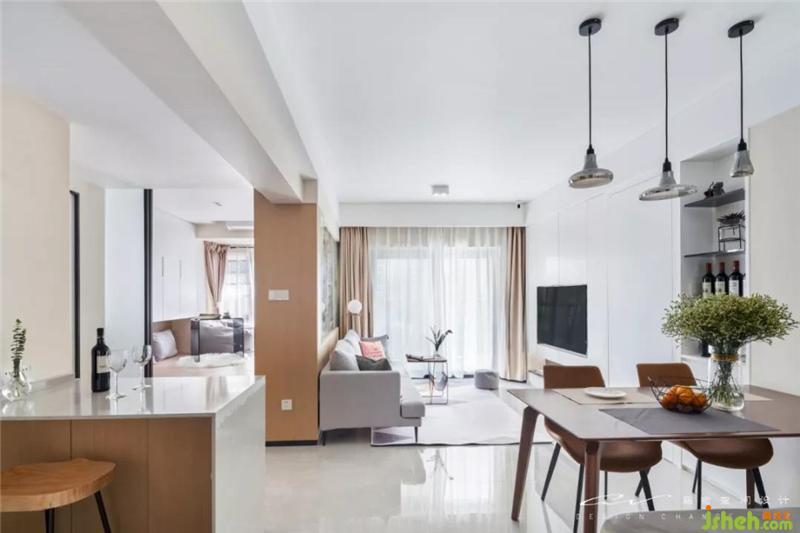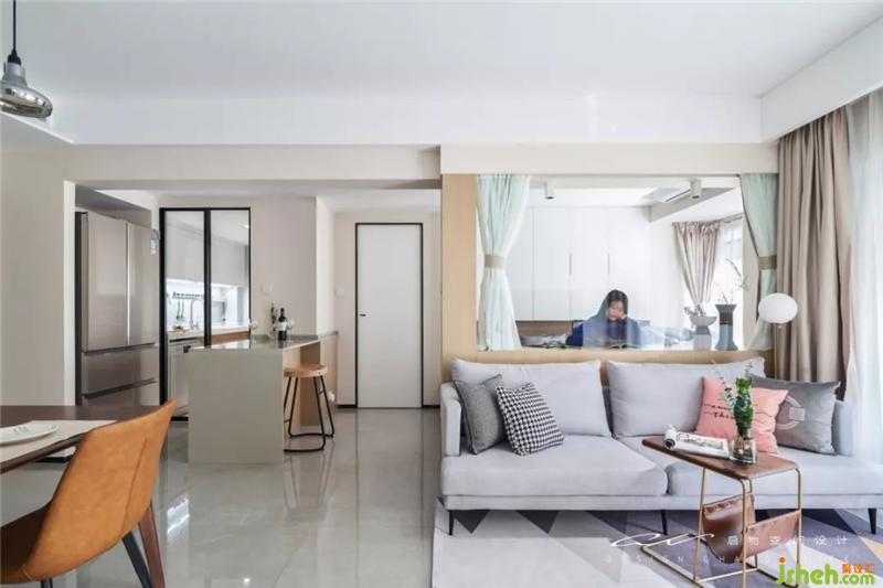 實際套內面積僅55平,但想做到100平的平效?書房通透+輕食區(qū)外置+客餐廳,成果肉眼可見。 裝修設計