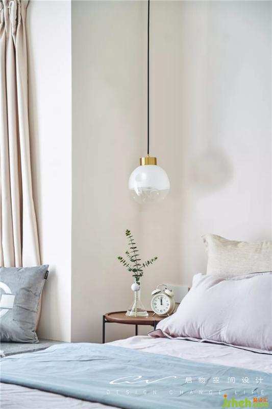 藕粉色的床品,搭配霧藍(lán)色的蓋毯,溫姐粉色的心大滿足。梳妝臺是網(wǎng)紅款。