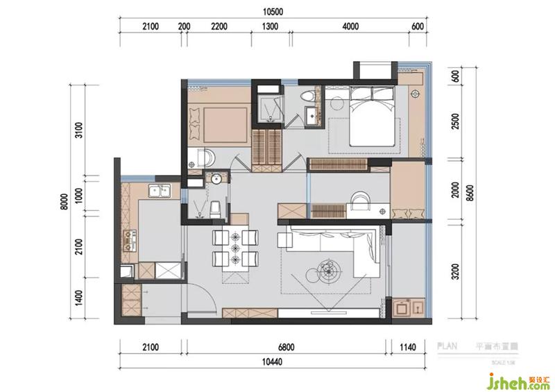 ?將橫跨的陽臺并入書房,正好作為床位。功能齊全兼具客房的功能。