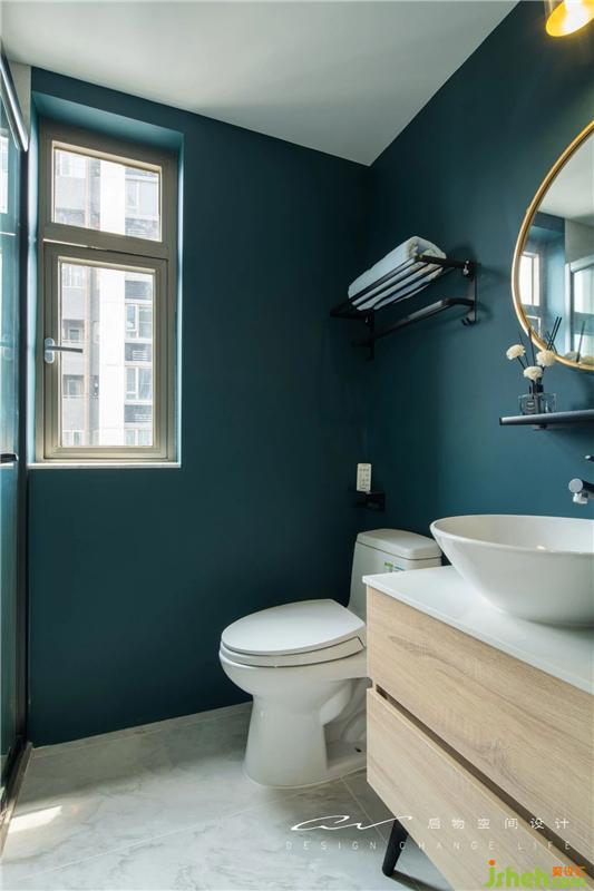 主衛(wèi)墨綠配金,采光好顏色的選擇更多樣。