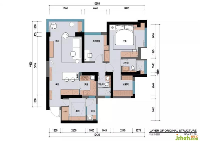 3:最靠里的臥室改成衣帽間,作為主臥的套間。