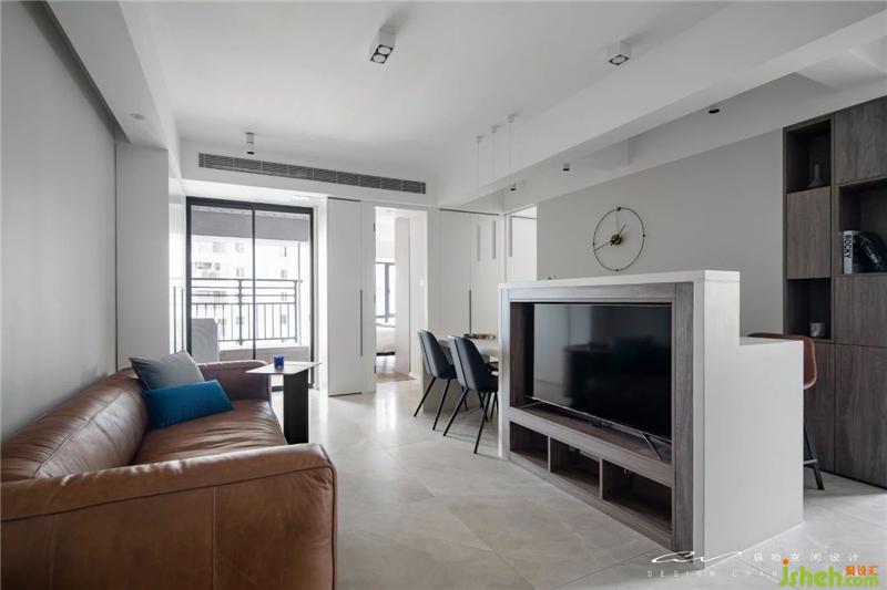 上一張客廳大視角。 EN~電視墻好像是吧臺(tái)?沒(méi)錯(cuò)!68m2的房子也可以有吧臺(tái)。