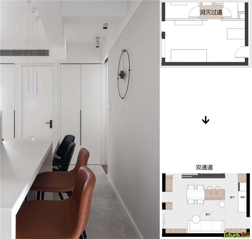 EN~亮點(diǎn)!68m2的房子也有雙通道的布局,在家也能少走彎路,此舉消滅了舊房的過(guò)道。裝修設(shè)計(jì)
