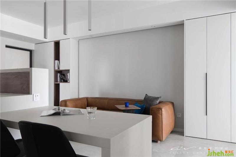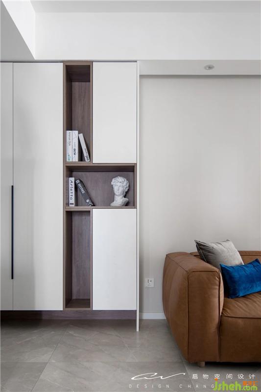 不用刻意做造型,對(duì)稱的柜子形塑空間。左邊是鞋柜、中間沙發(fā),右邊給客廳用,剛剛好!