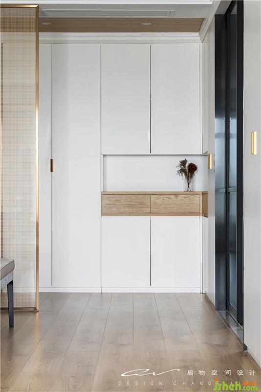 玄關(guān)有基本的鞋柜功能。臺面可以放鑰匙,放快遞。抽屜收納小雜物,材質(zhì)與天花木皮對應(yīng)。