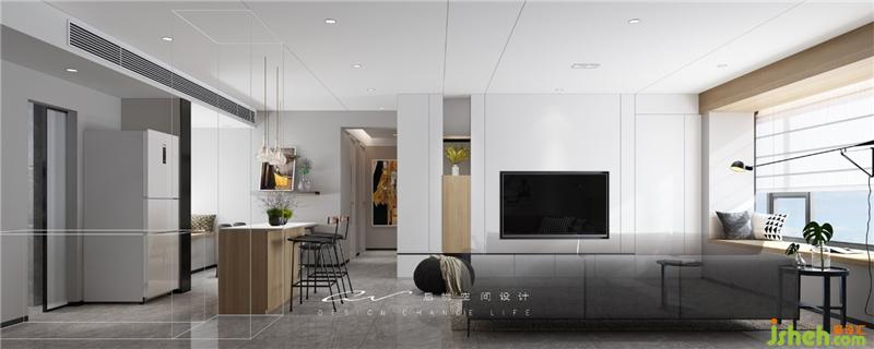 效果圖對(duì)比:王小姐原計(jì)劃全屋做中央空調(diào),設(shè)計(jì)好吊頂后又改為掛機(jī),遂天花造型有所出入。