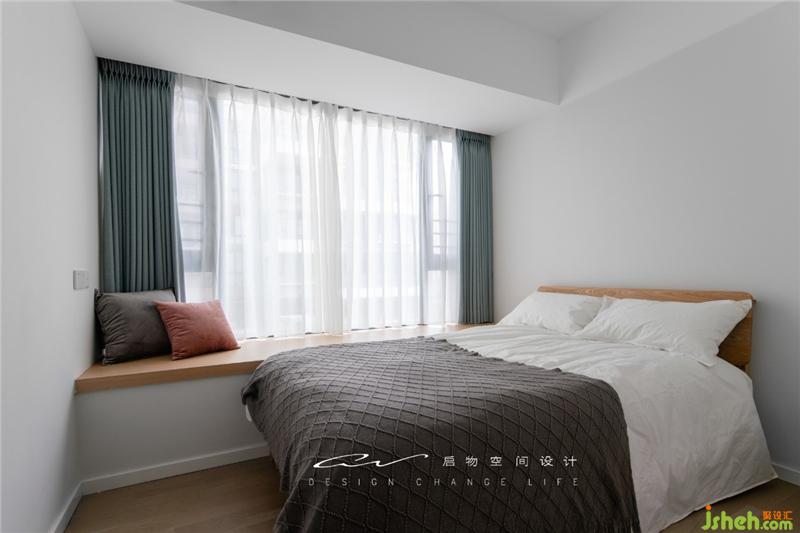 白墻與木質(zhì)家具的搭配,加上偏灰系的湖綠、橙紅撞色的點(diǎn)綴,讓長(zhǎng)輩房素顏中不顯單調(diào),活潑中不失溫馨。裝修設(shè)計(jì)