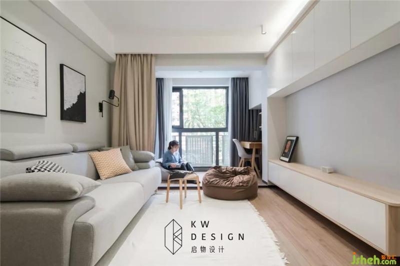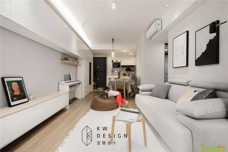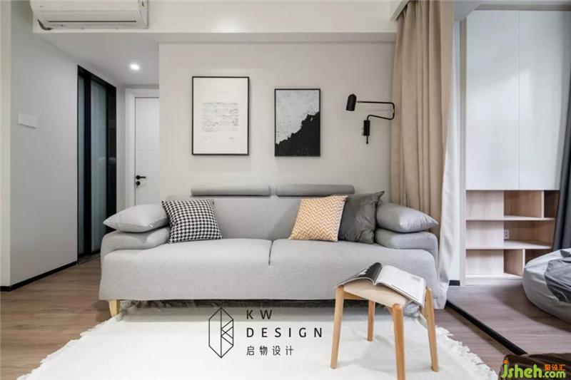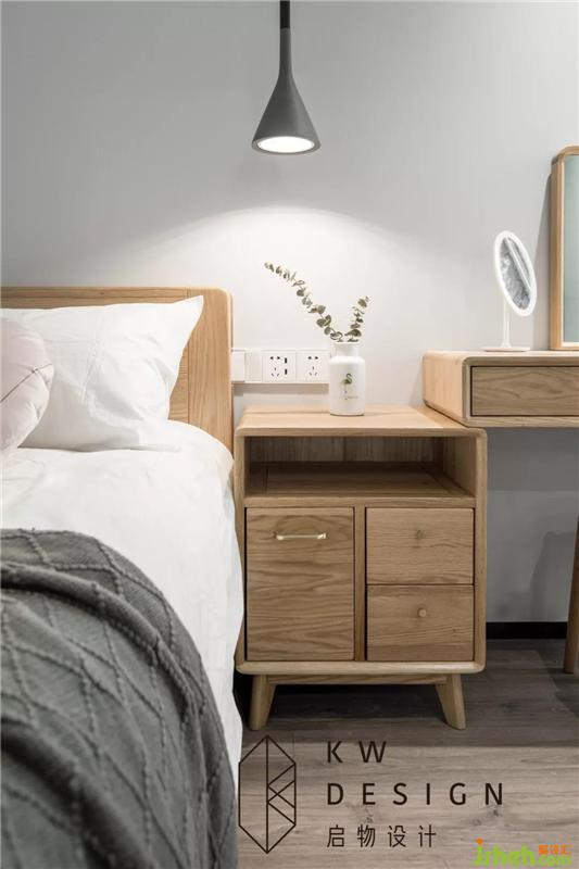 三件家具像是連體一般,和房間嚴絲合縫,木色家具與水泥吊燈展示裸露的材質(zhì)的魅力。裝修設(shè)計