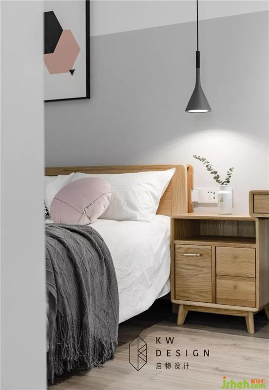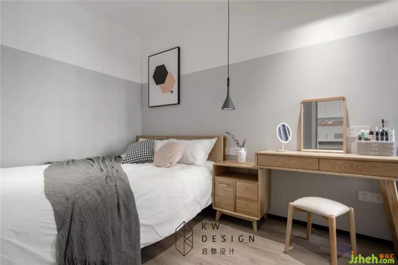 主臥墻面簡單的分色處理,搭配掛畫,也顯的別出心裁!