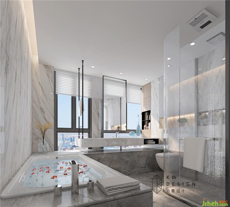 浴缸留有電熱毛巾架位置,確保洗完澡有熱乎干燥的毛巾使用。裝修設(shè)計