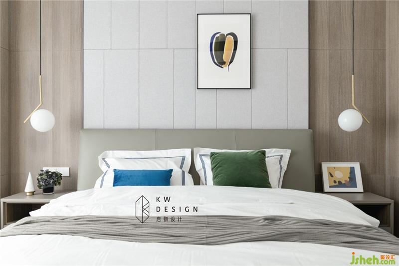 主臥用對稱的手法表達秩序感。設(shè)計細節(jié)在硬包縫與木飾面接縫的齊整。