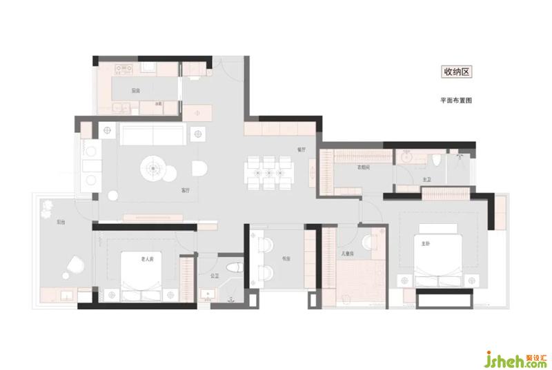 考慮到小公主以后的衣服和玩具越來越多還會需要玩耍區(qū)域,床的形式采用榻榻米形式加上飄窗的位置,騰出一米八的休息和玩耍區(qū)域,門的位置也被移動,增加衣柜和放玩具的空間